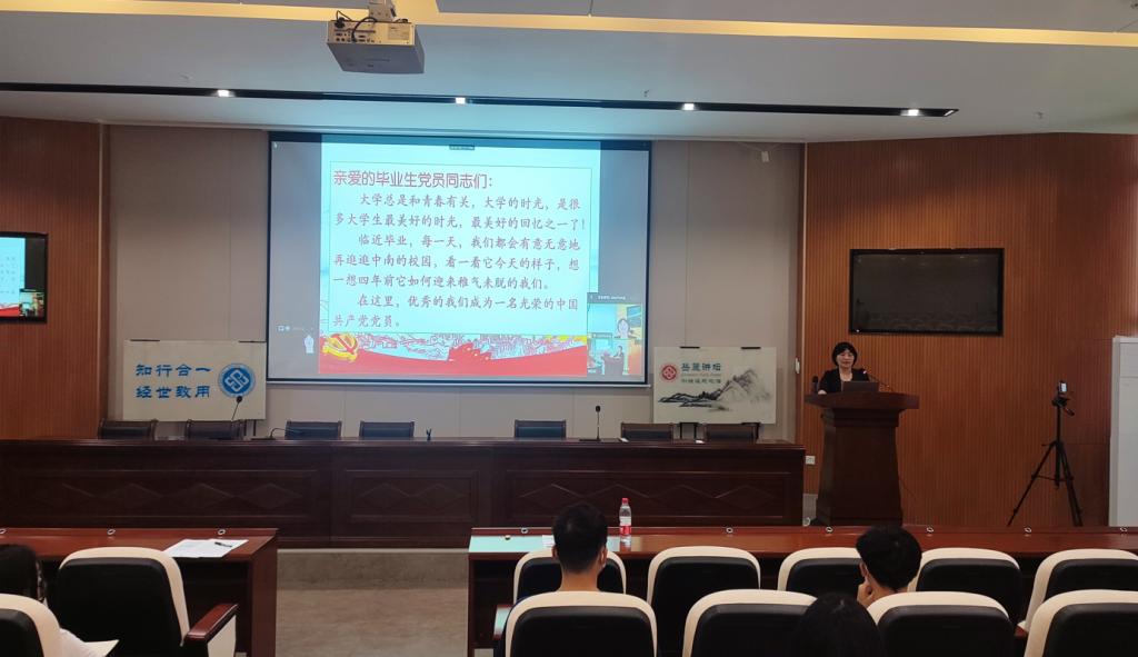 随后,学院党委副书记李建军老师为大家讲授“扬青春力量,担时代重任”主题党课。李建军老师讲述了“陕北公学”的历史,谈到了毛泽东同志对培养人才的要求与重视,并借此详细地提出了对毕业生党员的三点期望:树立正确的价值观、学习且创新、奋斗且担当。最后,李建军书记说到:“青春由磨砺而出彩,人生因奋斗而升华”,表达了对毕业生党员的殷切希望,祝愿毕业生党员们能在未来的征途中发挥党员的先锋模范作用,做一名的优秀的共产党员。