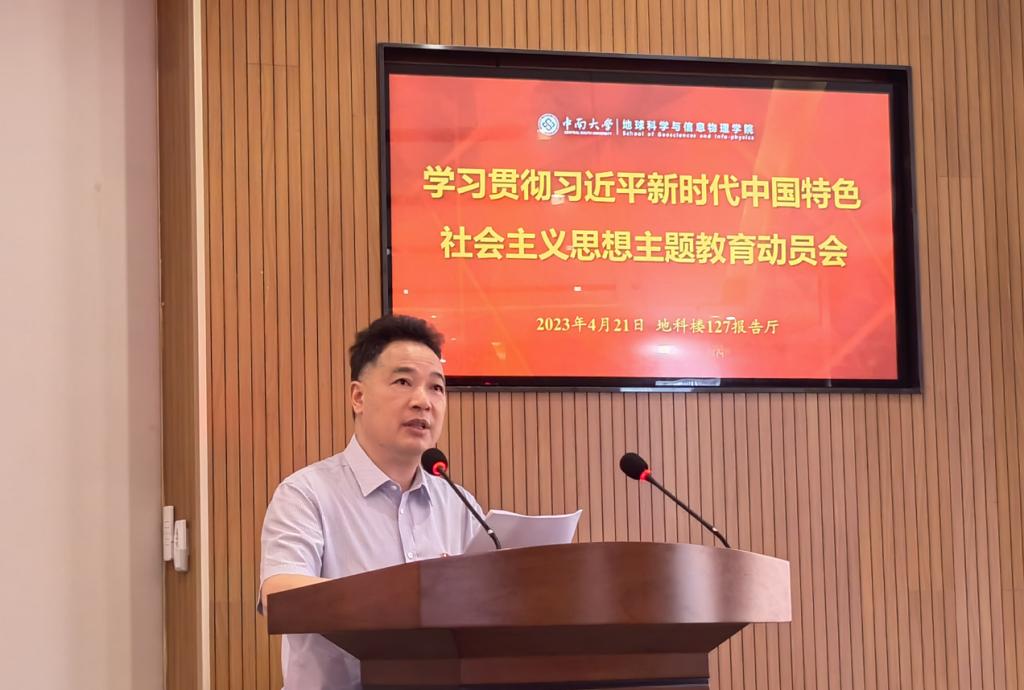 4月21日上午,地信院在地科楼127报告厅召开学习贯彻习近平新时代中国特色社会主义思想主题教育动员会议。学院党委书记邵拥军作动员讲话,对学院开展主题教育进行全面动员部署。学校主题教育第三指导组组长、党委党校常务副校长赵永正作指导讲话。学校主题教育第三指导组成员,学院党政班子成员、党支部书记、系中心主任、副科级以上干部及党员代表参加会议。