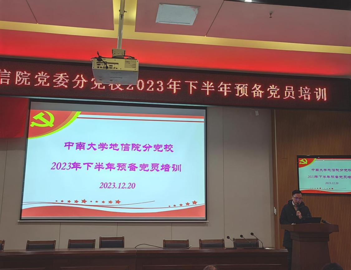 12月20日下午14:00,地信院党委分党校2023年下半年预备党员培训会于地科楼127报告厅顺利举行。地信院党委副书记刘浩、分党校入党积极分子培训班班导师杨晨雨、2023年新发展的预备党员参加,会议由分党校发展对象培训班班导师杨通田主持。