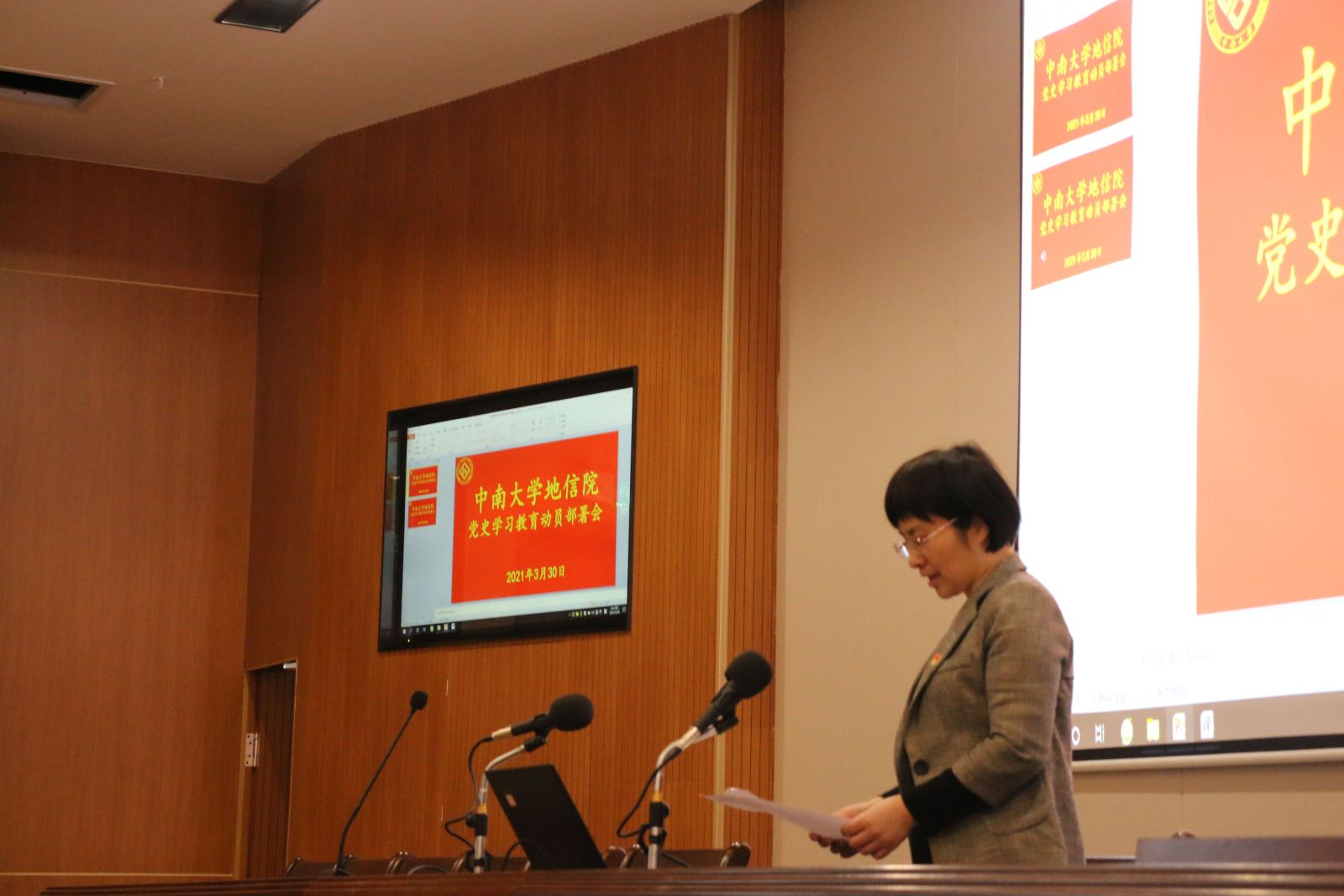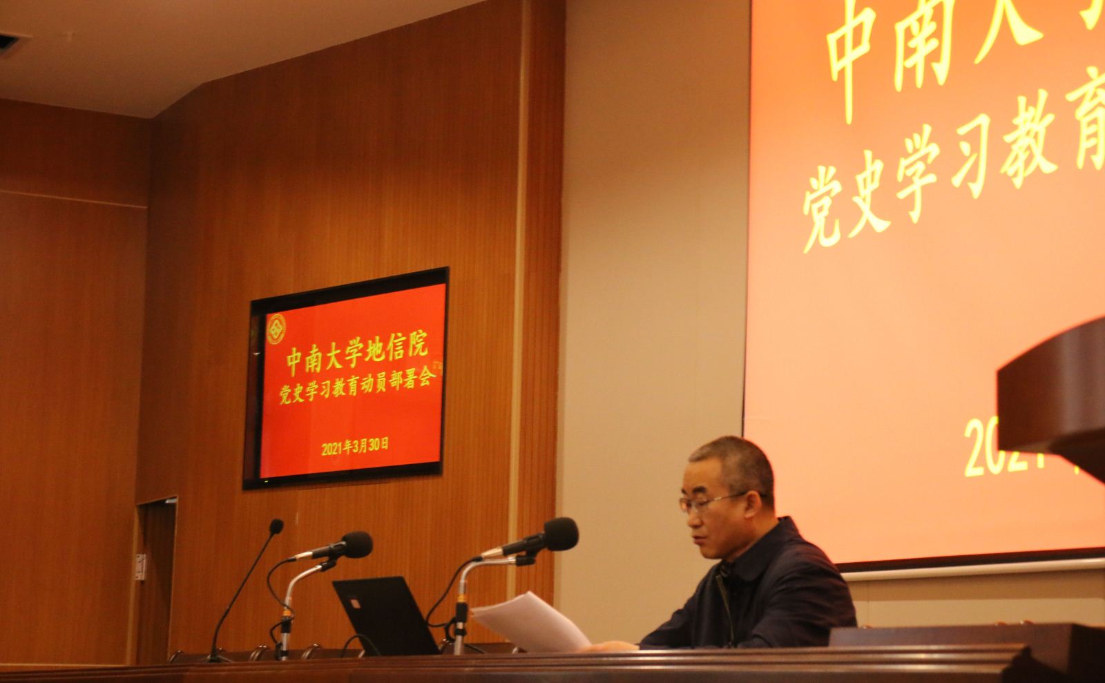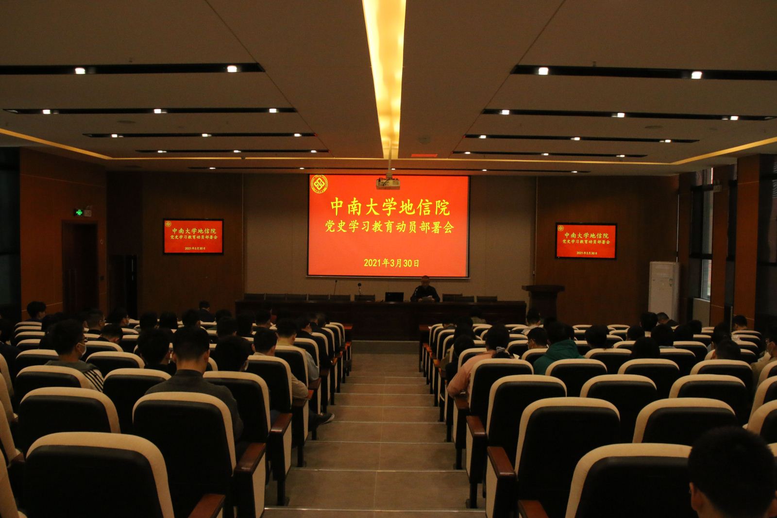 3月17日下午13:00,地信院教职工大会于新校区地科楼综合报告厅召开。会议有序进行了2020年度学院领导班子和领导干部民主测评,并进一步深入学习了《深化新时代教育评价改革总体方案》及相关文件精神。会议由戴前伟院长主持,除部分出差老师外,在校全体教职工出席了会议。