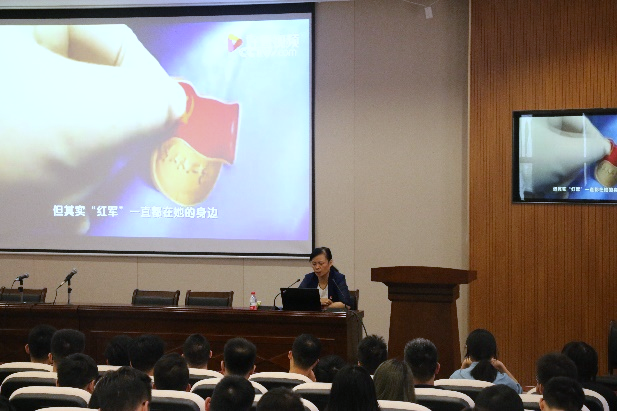 原创歌曲《红色的赞歌》将同学们的思绪聚集在课堂上。MV结束后,地信院党委副书记李建军讲话,李书记提到,党史学习教育恰逢建党一百周年的重大时刻,学习党史,是为全面建设社会主义现代化国家汇聚强大的红色力量。同时她对朱校长的到来表示热烈的欢迎。而后,党课正式开始。