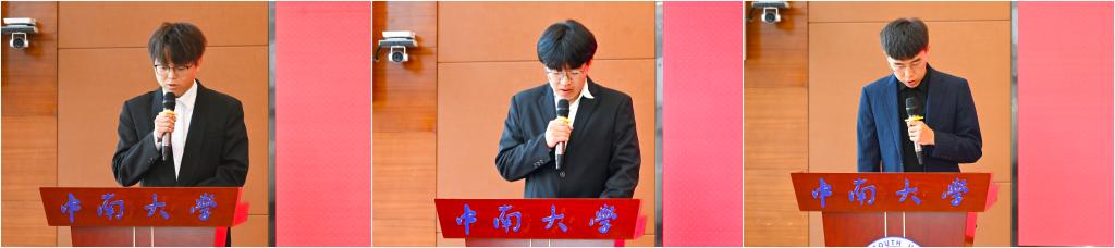 典礼最后,院20级博士班阳洁、测绘2003班孙千哲、地信类2203班阿曼太·哈力依次作为获奖代表发言。他们从各自入校以来的学习与生活经历出发,对关心爱护他们成长成才的领导老师、深情厚谊心系母校的校友们表示感谢。他们表示将以优秀校友为榜样,珍惜学习时光,锤炼过硬本领,用实际行动践行当代大学生的责任与担当。