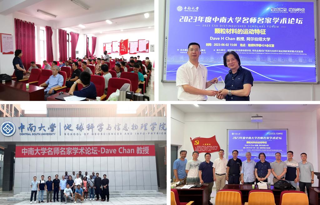 名师名家学术论坛纪念铭牌,对Dave Chan教授表示热烈欢迎与衷心感谢。会后,Dave Chan教授与参会师生代表及留学生参观了有色金属成矿预测与地质环境监测教育部重点实验室,对相关实验工作提出了指导。