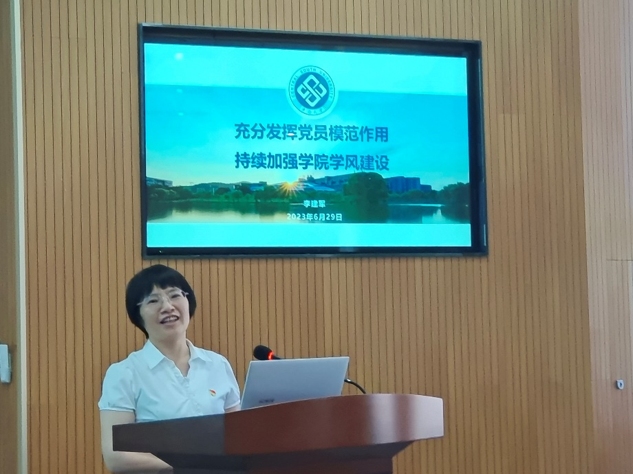 李书记对学院进行的学风建设调查研究工作进行了解读。她提到,我们学院目前有1300多名本科生,招生条件特殊,学业学风建设任务重。针对学业困难生学习动力不足的原因,书记从学生的心理健康、专业学习、个人发展等进行了深入分析,为学生党员明晰了学院学风建设的痛点、难点和重点。