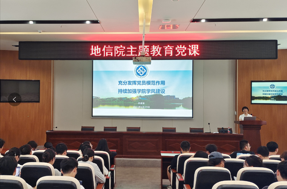 6月29日,地信院党委副书记李建军以《充分发挥党员模范作用,持续加强学院学风建设》为主题,在地科楼127会议室讲授专题党课,学院全体本科生党员参加。