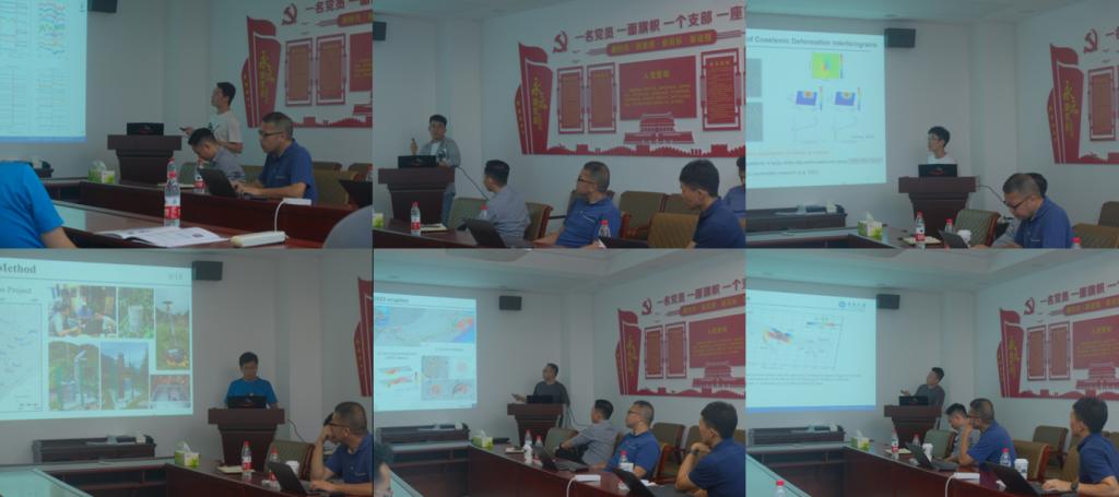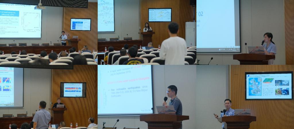 中国地震局地震预测研究所孟国杰研究员介绍了中国及周边的动力学环境和GNSS速度场。中国地质大学(武汉)郑勇教授介绍了利用大地测量数据和应力模拟对四川-云南地区部分断裂带的闭锁特征和地震危险性相关研究。中国地质大学(武汉)王墩教授介绍了基于密集台站并采用反投影方法分析地震破裂速度的原理方法及应用。中国科学院地质与地球物理研究所的李绍阳副研究员介绍了利用GNSS观测研究早晚期震间不同的形变特征和粘弹性模型的工作。南方科技大学陈克杰研究员介绍了利用实时高频GNSS数据进行海啸预警的研究工作。武汉大学耿江辉教授展示了震后极早期GNSS动态解用于捕捉短期震后信号的相关成果。