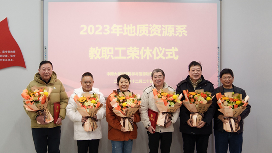 新校区地球科学楼 422 举行了系2021-2023年离退休教职工荣休仪式。吴堑虹、彭建堂、张洪培、刘玮、孟岳云、周建武等离退休教师代表以及在职教师和学生代表50余人参加,学院领导邵拥军书记、谭静强副院长出席仪式并参加座谈。