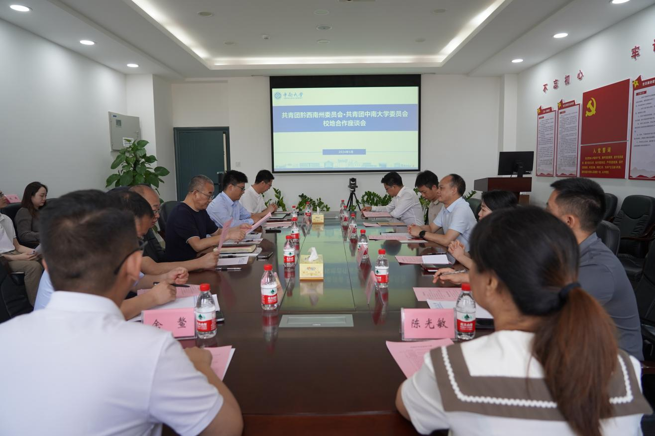 委员会校地合作座谈会”在地科楼214顺利举行。院党委书记邵拥军、校团委副书记李飞、院党委副书记刘浩,共青团黔西南州委副书记张礼维、黔西南州册亨县委副书记蔡洪斌等一行及学院师生代表参加会议。会议由院党委副书记刘浩主持。