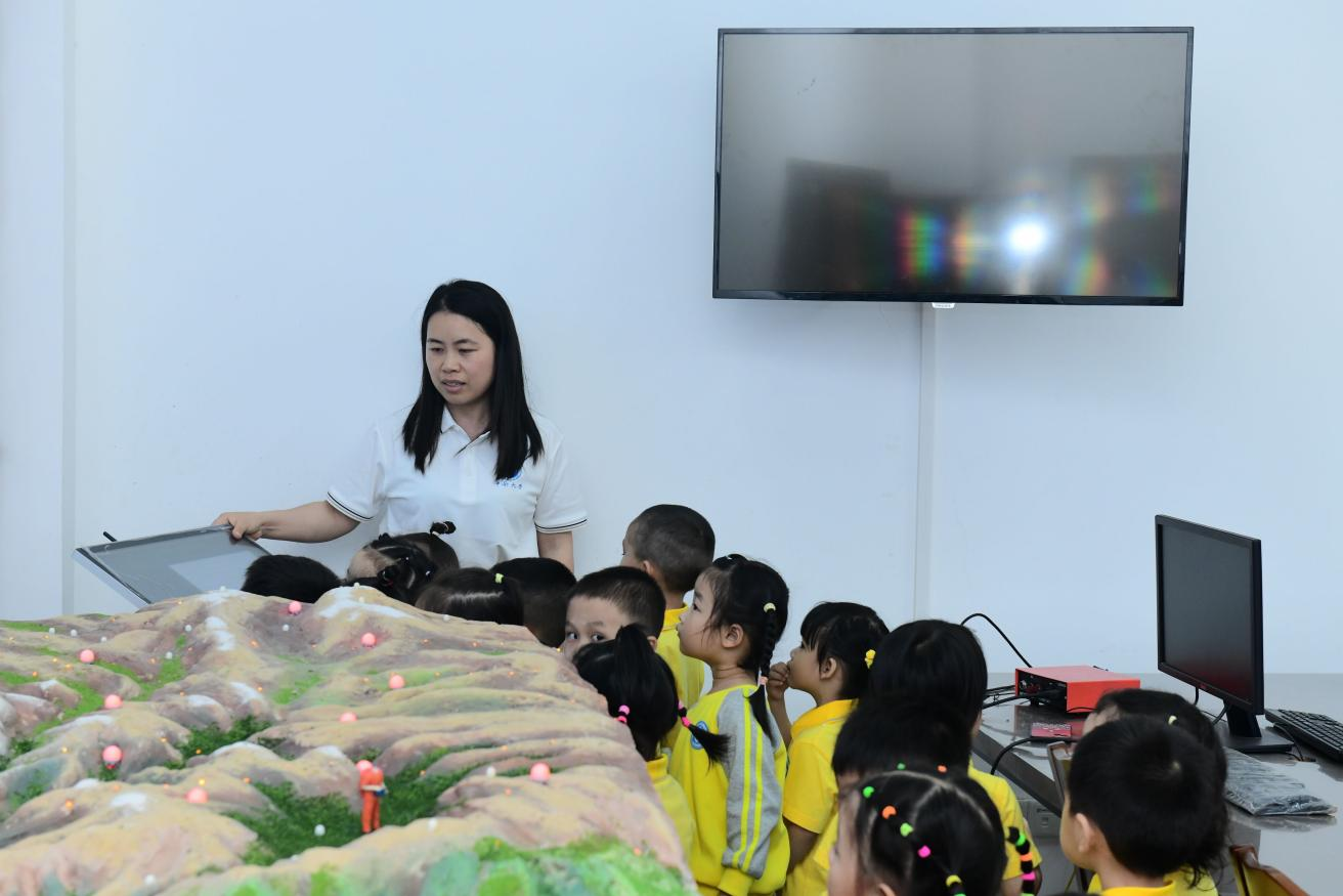当孩子们踏入地科楼三楼,面对那些精妙绝伦的地质模型,不由得发出惊叹。在这里,孩子们通过参观地球物理地震实验室,直观感受地震发生的过程,了解地震预警系统的工作原理;通过地磁实验室的互动展示,他们领悟到地球磁场的奥秘;在重力实验室这个充满神秘感的空间里,孩子们通过简单的实验理解了重力的概念,以及重力测量如何帮助科学家研究地球内部结构。最后在广域实验室,孩子们通过高清晰度的卫星影像和遥感技术展示,见识到了地球表面的广阔多样。他们兴奋地指认出熟悉的地貌特征,仿佛自己成了小小宇航员,从太空俯瞰着这颗蓝色星球。