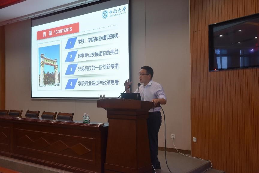 谭静强副院长做了题为《从地学专业发展形势看做好审核评估的重要性》的报告,系统介绍了学院本科教育教学的基本情况,地学专业发展面临的挑战,兄弟高校采取的创新举措,以及对学院专业建设与改革的思考。强调学院将以本科教育教学审核评估为契机,积极探索传统专业转型升级,加快推进专业建设与人工智能、大数据等现代科技,与碳中和、关键矿产等国家战略需求深入融合。