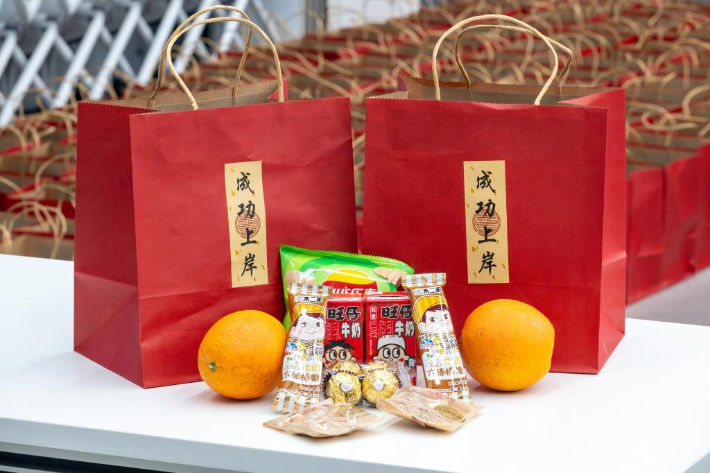 学院为考研学生精心准备了“暖心加油礼包”,礼包内有着寓意美好的丰富物资,包括象征“心想事成”的橙子、寓意“好运爆棚”的旺仔牛奶、象征“巧克难题”的巧克力、祝福“考运棒棒”的棒棒糖、希望“乐事将至”的薯片、期待“开心过考”的开心果,以及实用的暖手宝等物资。暖心礼包寄托着学院对考研学子的诚挚关切和美好祝愿。