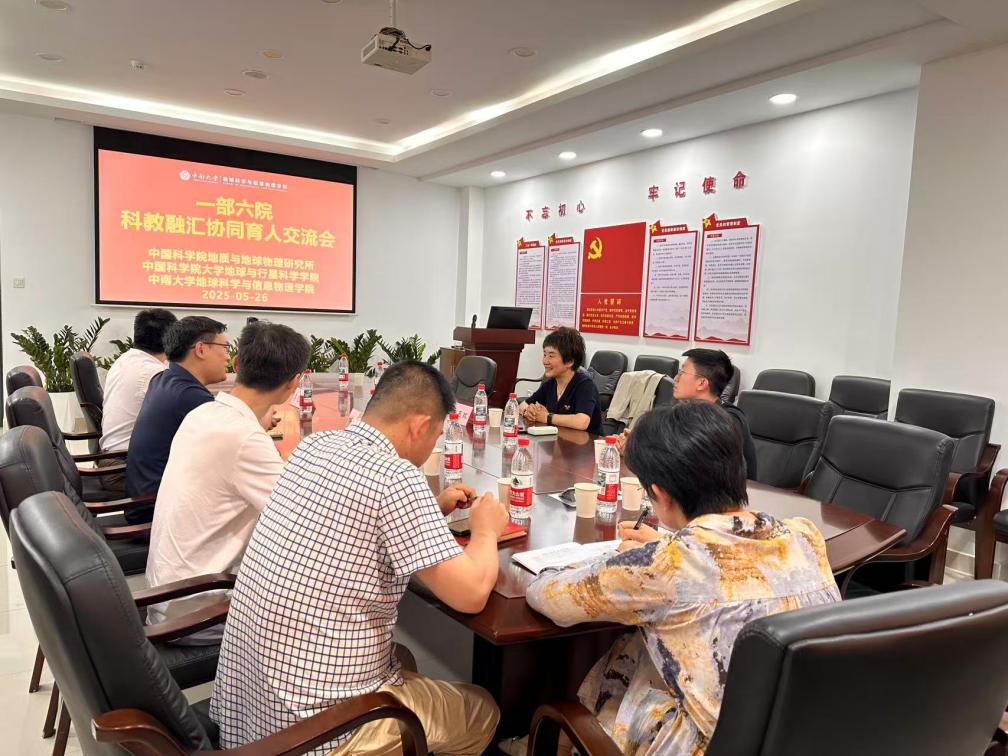 与中国科学院大学地球与行星科学学院、中国科学院地质与地球物理研究所在地球科学楼214和424联合举行“一部六院”科教融汇协同育人交流会。中国科学院地质与地球物理研究所教育处处长宋玉环、中国科学院大学地球与行星科学学院党委副书记于立业、中国科学院地质与地球物理研究所张之涵博士,地信院院长李志伟、副院长谭静强、学院各系教师代表王文卉、于淼、张大洲、余文坤、吴冬宇等共聚一堂,围绕科教协同育人展开深入研讨。