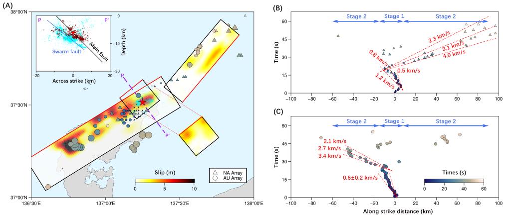 2024能登地震滑动模型与反投影成像结果