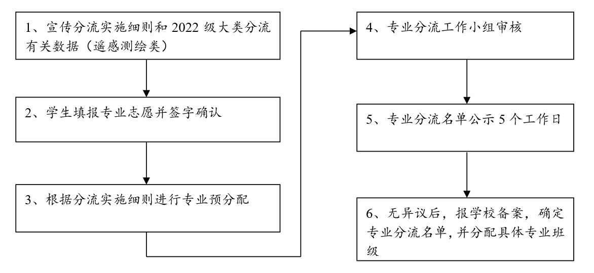 地信类专业分流工作从大一第二个学期四月份开始(具体时间以本科生院的通知为准),工作流程如下: