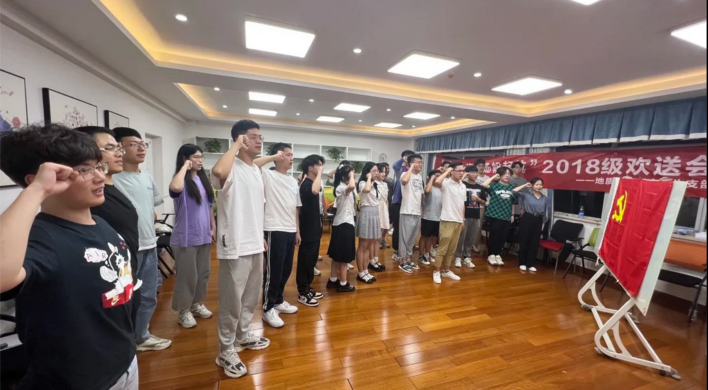 活动最后,在支部书记杨通田同志的带领下,所有同志一起重温入党誓词。本次欢送会再次加深了支部情,促进了新老同志们的交流,也团结了同志们的奋斗精神,加强了支部的凝聚力和向心力,促进了地质工程系本科生支部向更好的方向携手迈进。