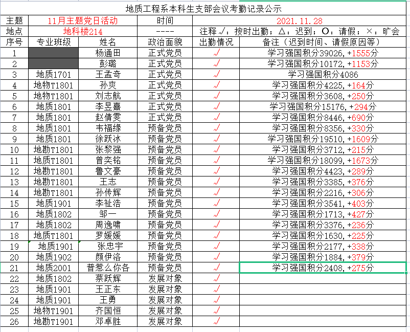 11月28日晚上18:30,地质工程系本科生支部11月党日活动暨第13期发展对象接收大会在地科楼214顺利召开,支部书记杨通田、支部全体成员及第13期五位发展对象参加。会议由王志和李昱熹同志主持。