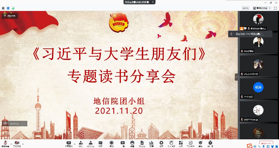 团委开展线上《习近平与大学生朋友们》专题读书分享会,地信院2021级本科生团支书参与分享会。会议由韩世博同学主持。