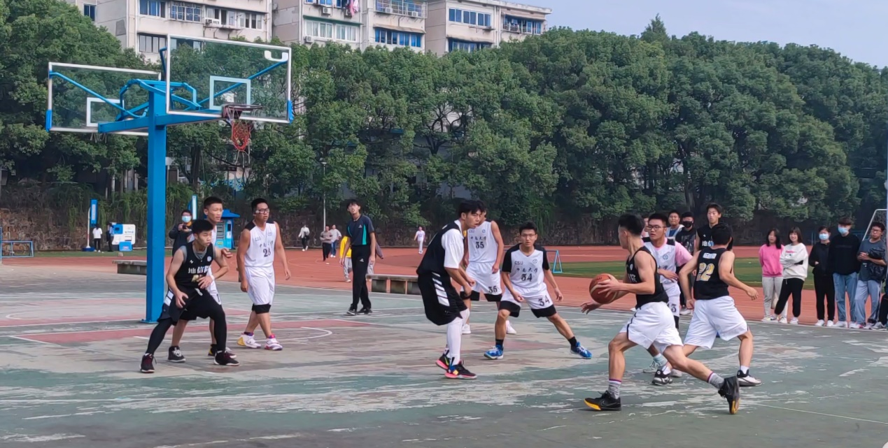 10点30分,伴随着哨声的响起,比赛正式拉开帷幕,比赛双方很快进入状态。队员间熟练地运球、传球,对阵双方积极地拼抢、精准地投篮,引来围观同学阵阵喝彩。双方比赛势头愈足,队员们都拼尽全力,为自己的队伍夺下一分又一分。在场观众也奋力呐喊,为各自支持的球队加油助威。