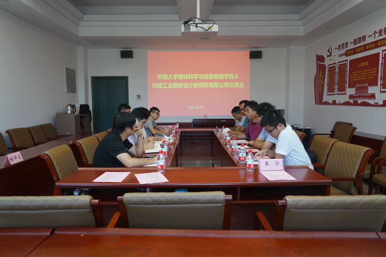 9月27日下午14:30,18漫画 与机械工业勘察设计研究院有限公司交流会于地球科学大楼216会议室顺利举行。出席此次会议的领导有机械工业勘察设计研究院有限公司党委副书记、总经理杨永林,人力资源部副部长、党委干部部副部长刘哲强,测绘工程院副院长王双雨,综合管理部副部长彭卫超,测绘工程院童建鹏,以及18漫画 党委副书记李建军,副院长李志伟,副院长邹滨,测绘工程系主任胡俊,地质工程系副主任张鑫鑫,地球物理系副主任郭振威。