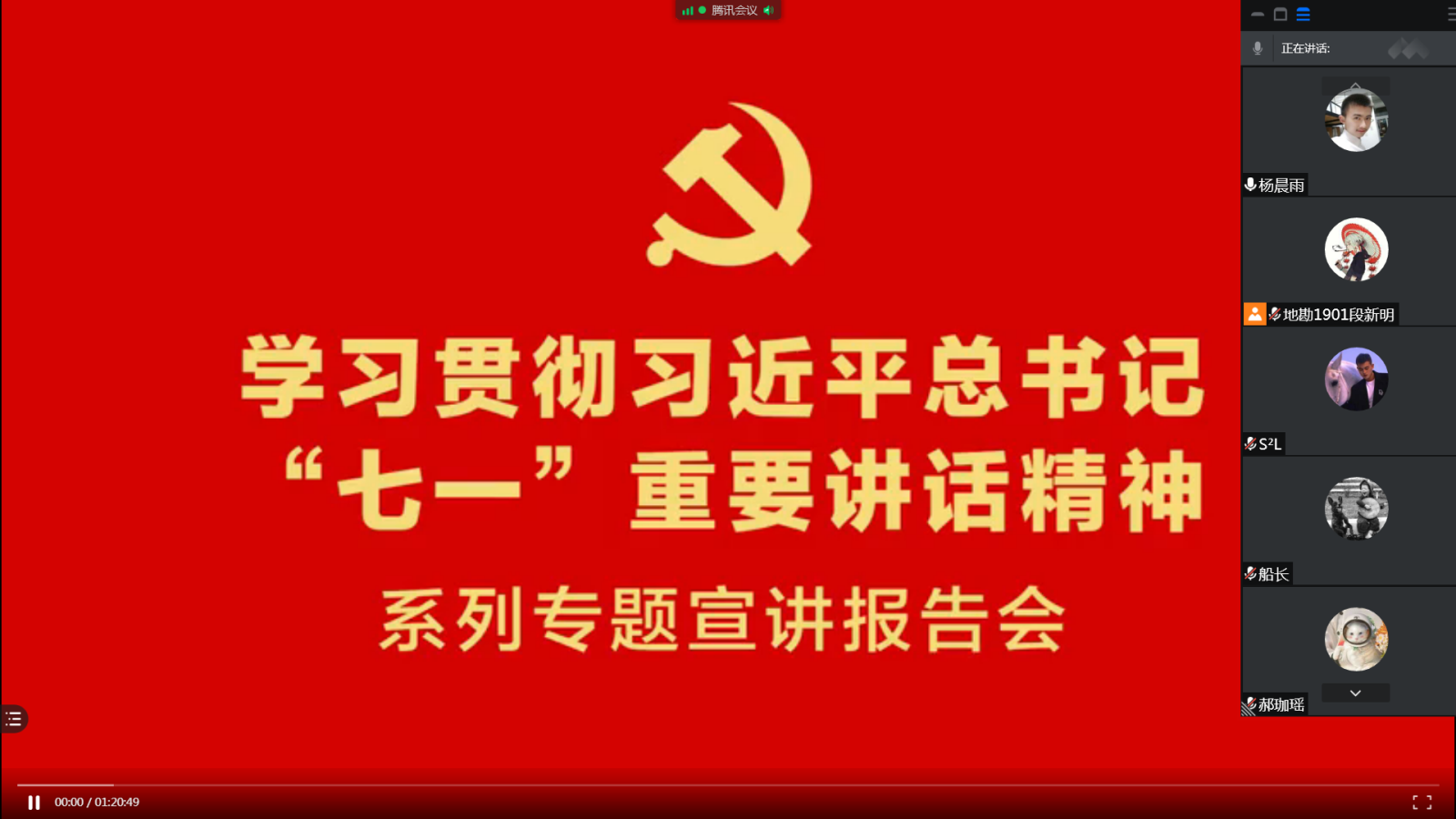 7月31日晚20:00,地质资源系本科生支部七月主题党日活动通过“腾讯会议”软件召开。会议由段新明同志主持,地质资源系本科生党支部全体成员参加。