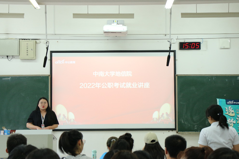 2022届毕业生就业季即将到来,为帮助地信学子提前了解选调生、公务员相关政策,做好暑期备考规划,6月18日下午15:00,地信院2022年选调生备考指导讲座在新校区A座308教室顺利开展。讲座由中公教育湖南研究院申论二部部长彭际蓉老师主讲。