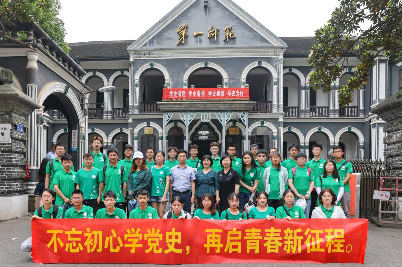 在抵达第一师范纪念馆后,在讲解员的引导下,20级遥感全体学生和地信院本科生党支部与湖南第一师范学院教科院学生党支部一同参观学习。全体成员参观了毛主席在第一师范就读时原貌修复的大礼堂、第八教室与寝室、陈列展厅、主席锻炼故亭等,全面了解了毛主席在第一师范的学习和生活经历,更加深了我们对老一辈无产阶级的革命家的丰功伟绩敬佩,被先辈们坚定的信念和团结奋斗的精神感动至深。