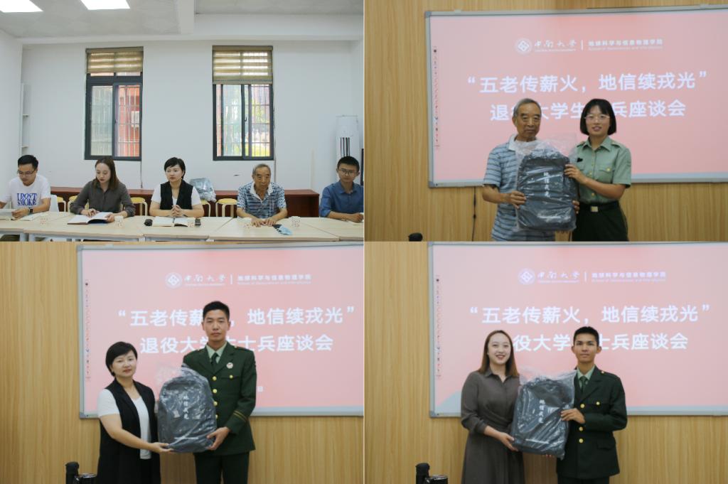 至此,地信院退役大学生士兵座谈会圆满结束。本次座谈会取得了良好的成效,相信在院党委的指导下,在院关工委的关怀下,学院征兵入伍工作将取得更加辉煌的成绩,也将有越来越多的同学愿意投身于军营、报效祖国,延续地信戎光。