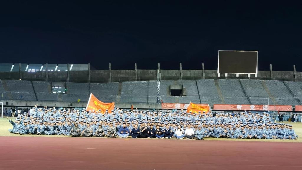 2022级新生军训红色歌曲合唱比赛在新校区体育馆超燃开唱。地信院党委副书记李建军,辅导员刘凯、杨通田加入到队伍里与大家一起完成了曲目演唱。院研究生辅导员田可以及本科生辅导员刘琦、彭璐、杨晨雨也来到现场为新生们加油助威。