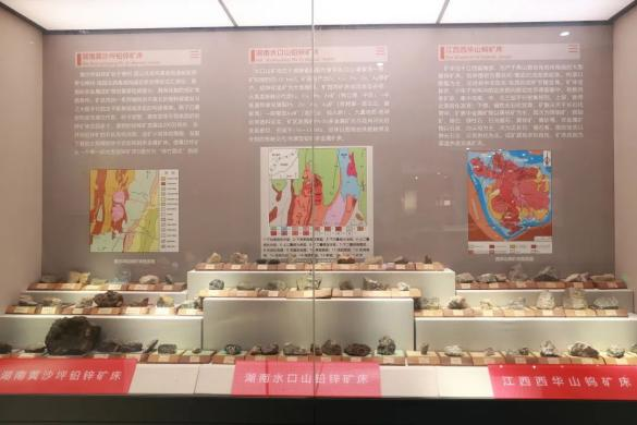 接下来进入的是矿物岩石厅以及矿石矿床厅。参观中,李书记指出,地质博物馆是在国家配套经费支持以及校友、教职工捐款下修建的,博物馆中的很多标本也是由校友、各系老师在从事野外工作时采集带回的,其中凝聚着很多人的期盼。