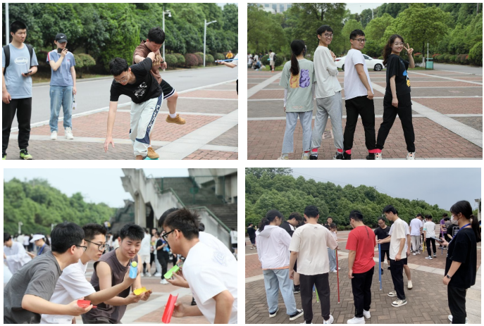 本次活动设置“四人五足”、“珠行万里”、“踩砖过河”、“奔跑一条龙”、“不倒森林”五个比赛项目。首先进行“四人五足”项目,比赛选手四人一心、齐头并进,充分展示了团队配合、相互支持的力量。在接下来的“珠行万里”项目中,各班比赛小组五人同心协力,一同为小球搭建通向终点的长桥。然后进行“踩砖过河”项目,比赛两人一组、相互配合,一步步传递、一次次坚持充分展现了地信学子坚持不懈的精神。之后进行“奔跑一条龙”项目,比赛小组四人奔跑接力、配合默契,共同挥洒青春的汗水。最后进行“不倒森林”项目,班级十人一组参赛,默契的配合、整齐的口号充分展现了同学们团结的力量与强大的凝聚力。