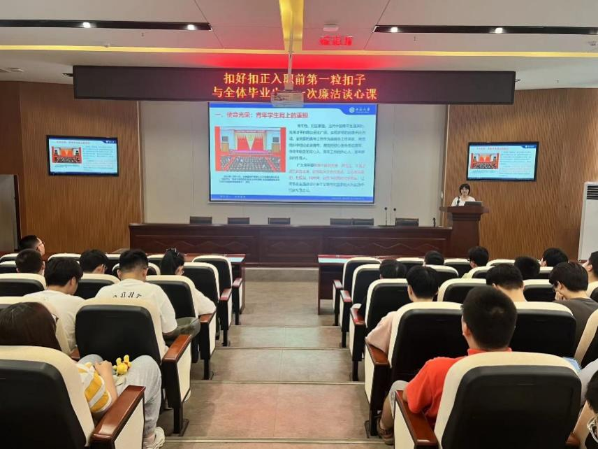 2023年6月1日下午,地信院“扣正扣好第一粒扣子”2023届毕业生廉洁教育讲座在地科楼127顺利开展。此次讲座由院党委副书记李建军老师主讲,2023届毕业生参会。