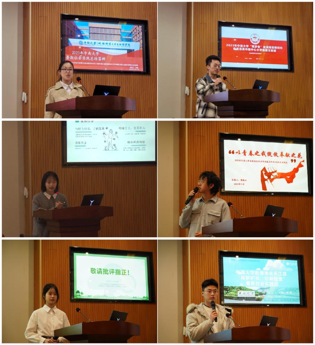 2022年暑期社会实践校级优秀团队队长刘志鹏同学出席本次活动并担任评委。本次答辩会由覃宇曼同学主持,地信院6支校级立项团队参与答辩,2022级、2023级本科生代表到场观看学习。