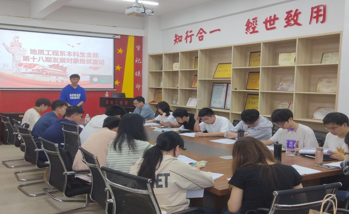 地质工程系本科生支部第18期发展对象推优会在新校区地科楼112召开,支部全体同志以及来自21和22级共13名入党积极分子参加本次推优会。本次会议由张庭桂同志主持。