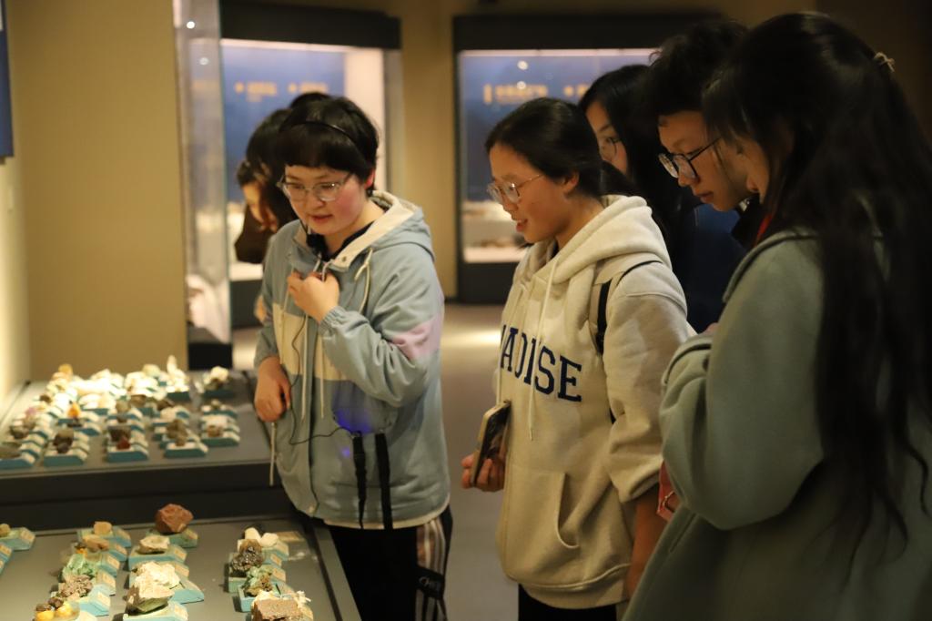 地质博物馆进行参观学习,了解了生命的起源与演化、矿产资源的形成与开发、矿石矿床的分类与特点,以及各类矿物岩石的形态、种类与演变规律等地质知识,让敬畏自然、和谐共生的科学发展理念更加深入人心。