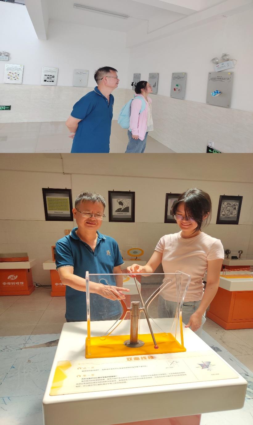 上午时分,实践团队来到了宜章县第一中学的科技馆。在科技馆内,张永强校长亲自担任讲解员,带领实践团成员参观了学校的各种科技展品。从光的折射原理到机械运动的奥秘,从电子技术的应用到生物科学的探索,每一项展品都充分地展现了课本上的科学原理,将理论知识化为实际现象。通过张校长的讲解和互动实验,实践团真切地感受到了该科技馆浓厚的学习氛围。
