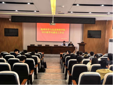 为加强年级学风建设,更好的为期末考试做准备,2025年12月11日,地信院本科生2025级在地科楼127报告厅开展学风建设工作会,辅导员张馨心、刘洪宇主持,各班主要学生干部参会。