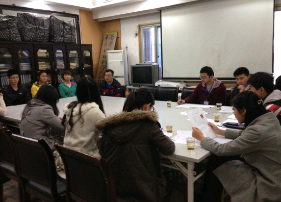 学生工作办公室特面向全院12级新生进行了学生助理的招新。2013年3月17日,学生助理招新在地学楼201顺利进行,此次面试由王李昌老师总负责,助理辅导员李沈鑫、朱怡欢及学生助理李赛娜、张艺琳、郑凯文、潘磊担任面试官。