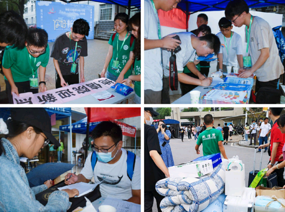 迎新志愿者分别在新生下车点、升华公寓12栋、31栋迎接新生。每位迎新志愿者都不畏风雨坚守岗位、充满热情为新生服务、耐心周到为新生答疑,全体迎新工作人员都在用行动向20级新生表示最诚挚和最热烈的欢迎。