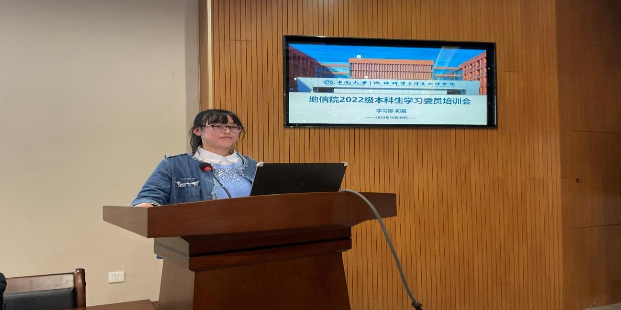 2022级本科生学习委员培训会在地球科学大楼127报告厅顺利开展。本次培训会由地信院团委学生副书记杨舒茗主持,地信院学生会学习部部长何嘉同学主讲,地信院2022级本科生学习委员全员参会,旨在帮助学习委员明确工作职责,提高工作能力,在新生班级中充分发挥学习委员的学风引领作用,促进优良班风学风养成。