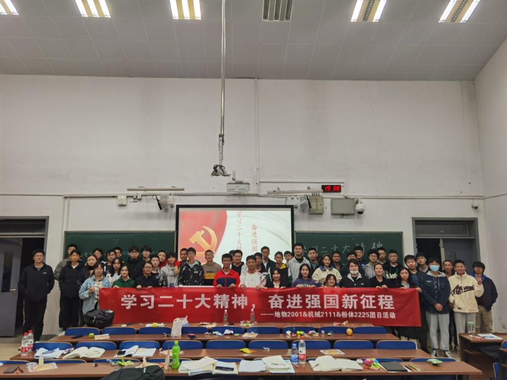 为深入学习宣传贯彻党的二十大精神,地物2001团支部联合机械2111团支部、冶材2225班团支部,以“学习二十大精神,奋进强国新征程”为主题,开展了十一月团日活动。