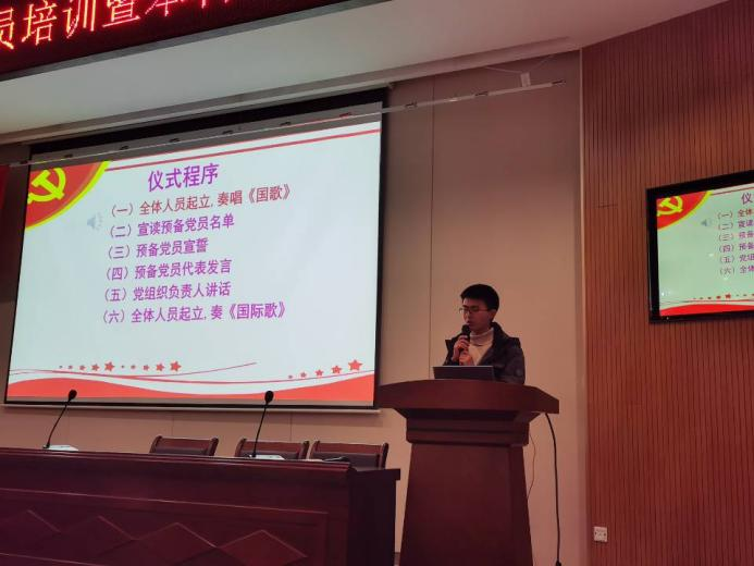 地信院分党校预备党员入党宣誓仪式在地科楼127报告厅顺利举行,地信院党委副书记李建军同志、地质资源系本科生支部书记杨晨雨同志、2022年新发展的预备党员参加宣誓仪式,会议由杨晨雨同志主持。