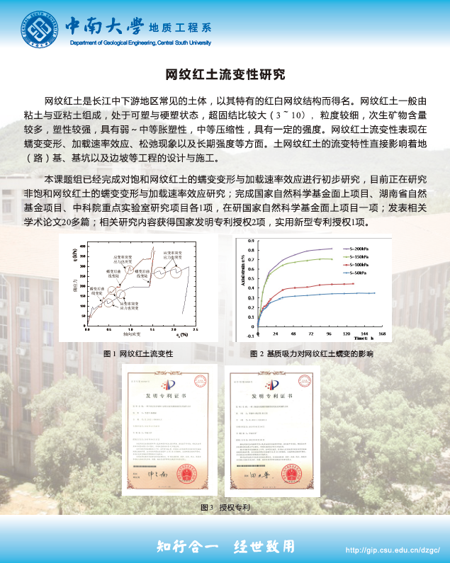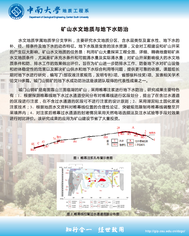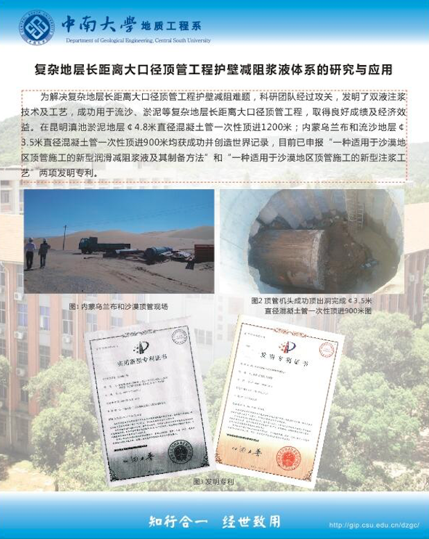 “双一流”建设总体目标和要求,地质工程学科设立了复杂地质工程理论与技术、地质环境监测与灾害防治理论及技术、石油与非常规能源成藏理论与探采技术3个主要方向,同时规划了复杂地质体钻探基础理论和关键技术研究、基于地质体内部损伤及波动检测方法和地质灾害早期预测理论研究、页岩油气赋存富集机理与成藏条件研究、岩溶和断层破碎带地下水处治关键技术研究、复杂地质体(如网纹红土等)的特性研究、固体废弃物填埋场防渗关键技术及堆体稳定性研究、非常规油气储层脉冲水力压裂增效机理与关键技术研究、页岩气水平钻进过程中地质效应及作用机理研究等重点建设项目。